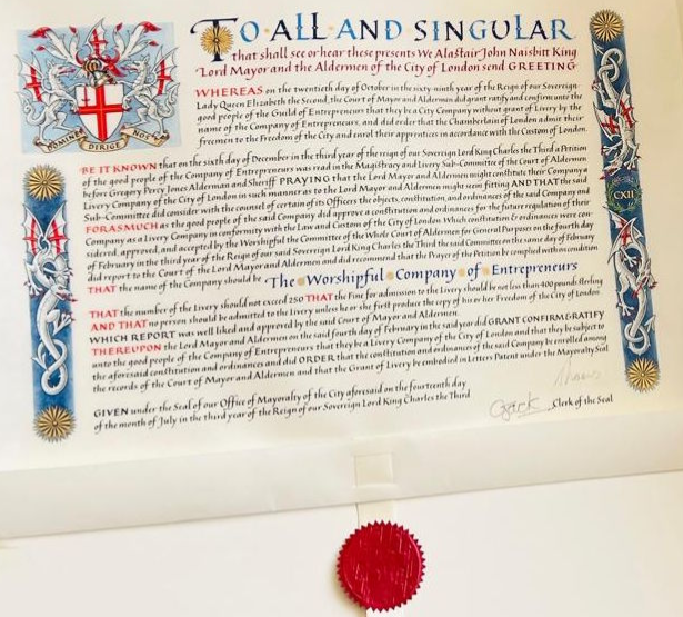 It is with deep gratefulness and considerable pride that I rise today on behalf of the Worshipful Company of Entrepreneurs to receive the Letters Patent which formally recognise our place within the City’s Livery tradition.