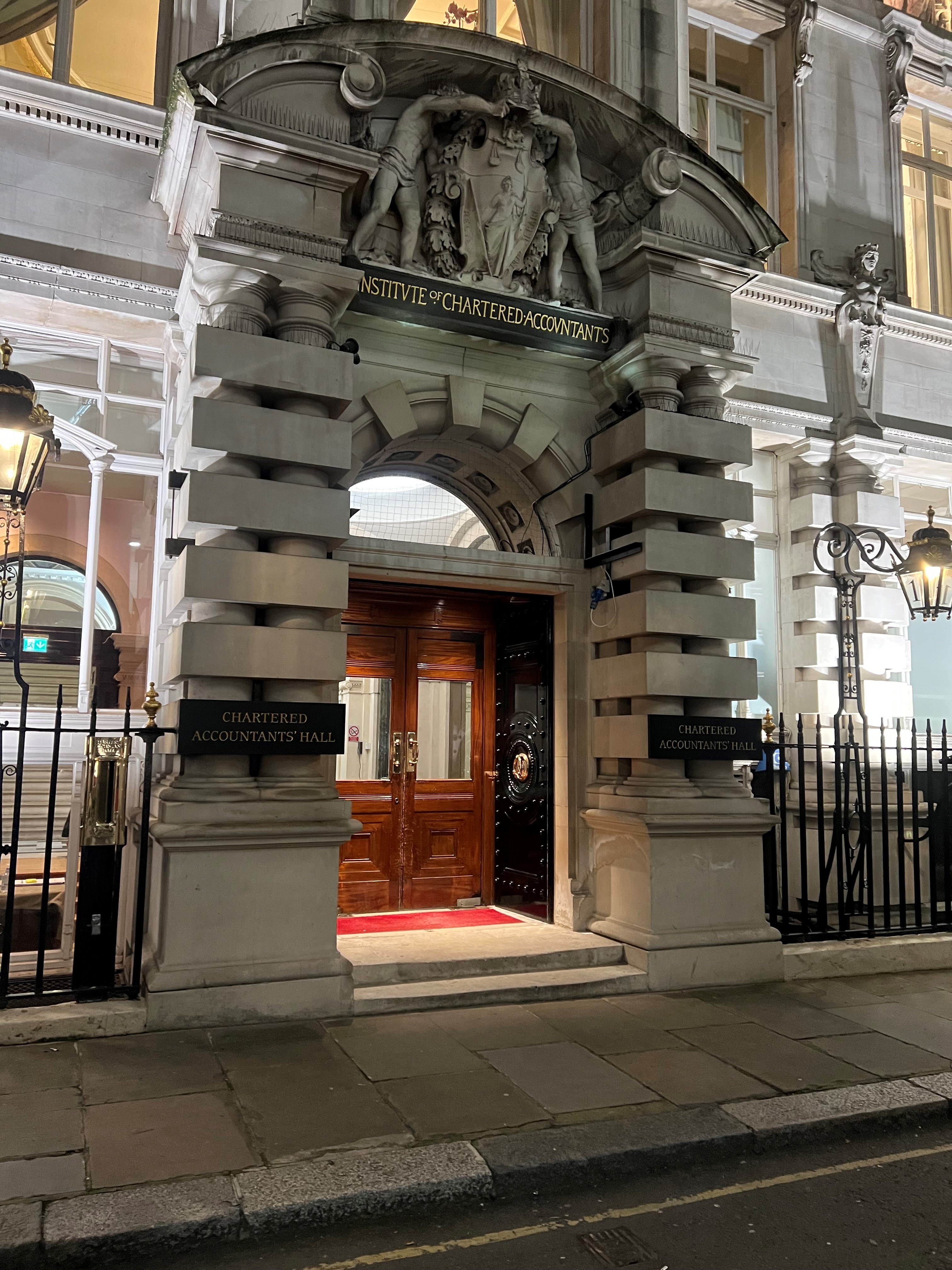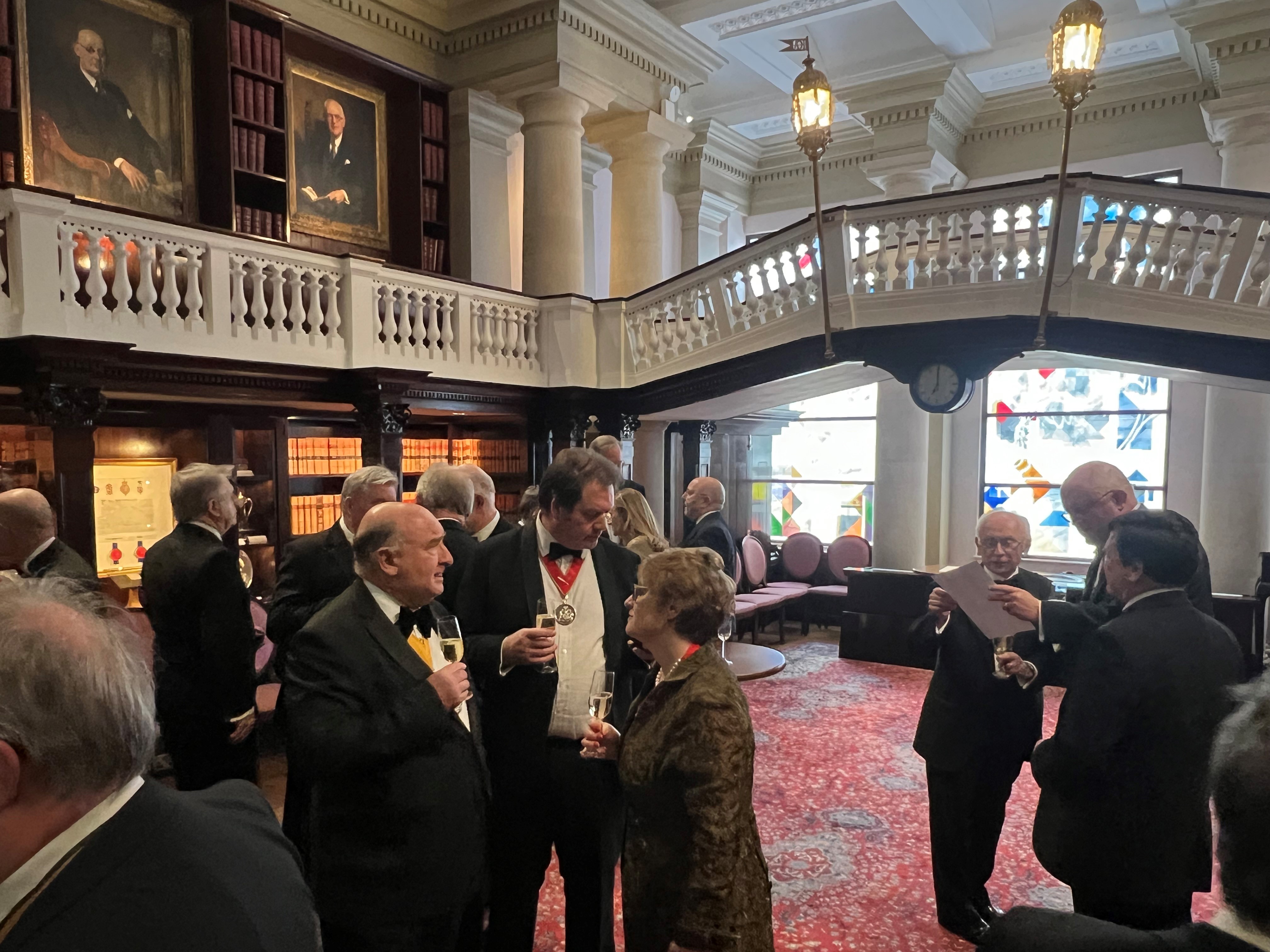Each year the Master & Wardens of the Worshipful Company of Chartered Accountants host a dinner for the members of the Financial Services Group and Masters of the other Livery Companies who are Associates or Fellows of the Institute of Chartered Accountants. I was delighted to join them in January in the magnificent surroundings of One Moorgate Place, also known as Chartered Accountants Hall. We enjoyed pre dinner drinks in the Members’ Room which is an amazing location with an internal balcony over proceedings, which also displays some of the silverware of the Accountants Company. Our dinner was held in the magnificent main Reception Room which has a very impressive domed ceiling and striking murals by George Murray, evoking classical scenes. Dinner was sumptuous and a great evening was had by all.