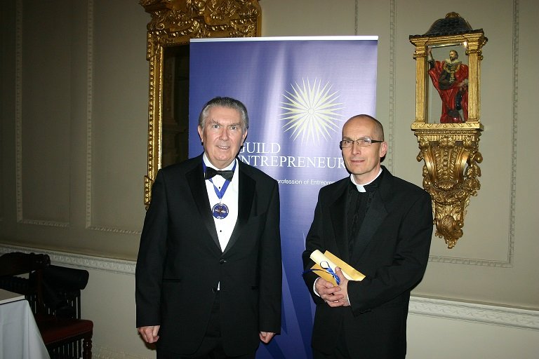 The Guild of Entrepreneurs welcomed a further eight Founder Freemen at an elegant black tie dinner at The Skinners Livery Hall at 81/2 Dowgate Hill on Wednesday 11th March. Presided over by Foundation Master, Alderman Sir Paul Judge, the event also marked the installation of Rev. Bertrand Olivier of All Hallows by the Tower as The Guild’s Honorary Chaplain (both pictured).
