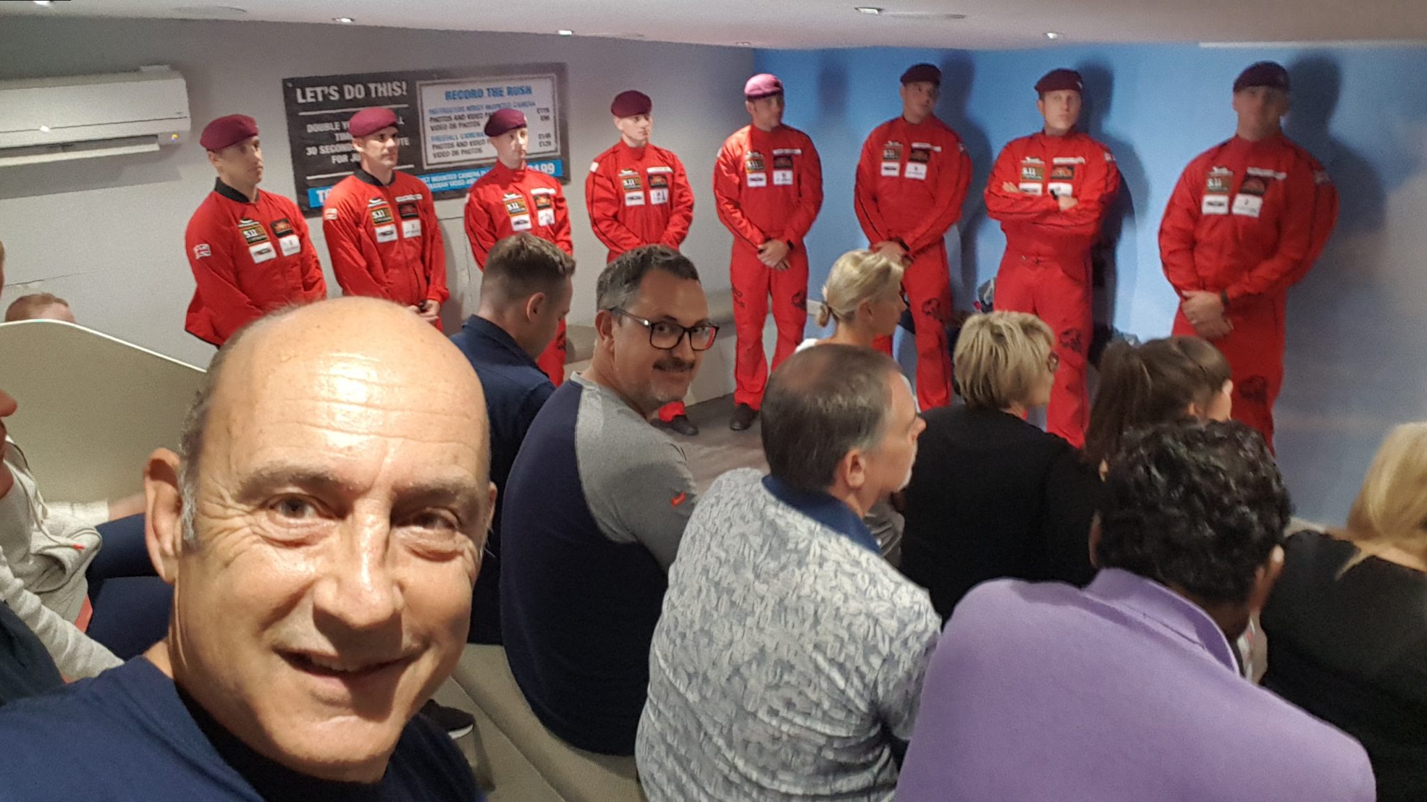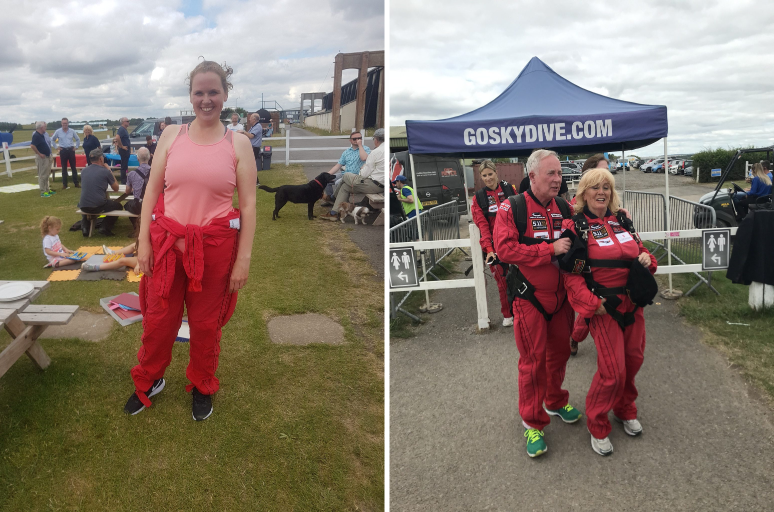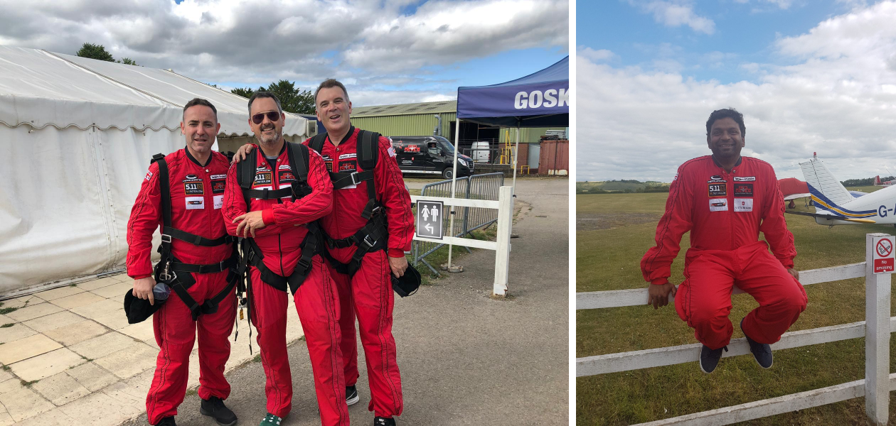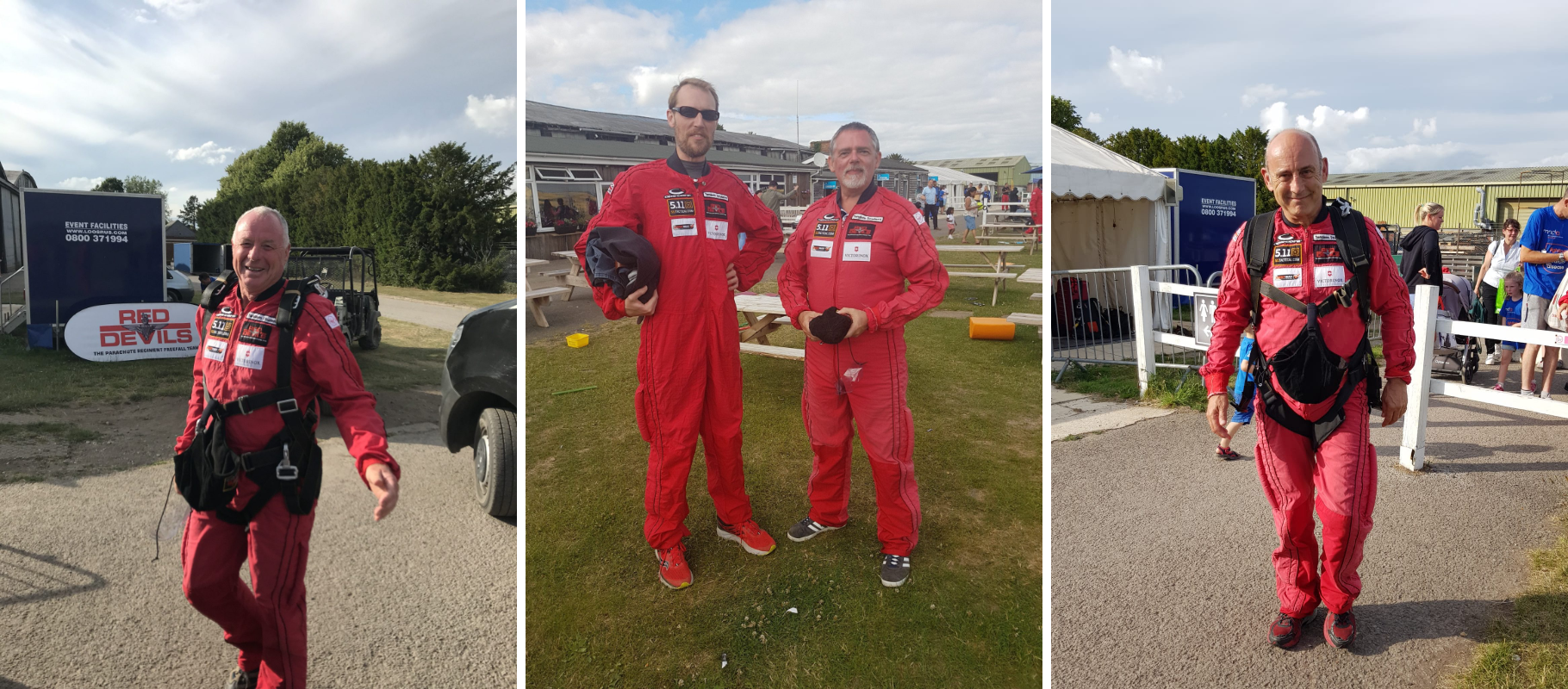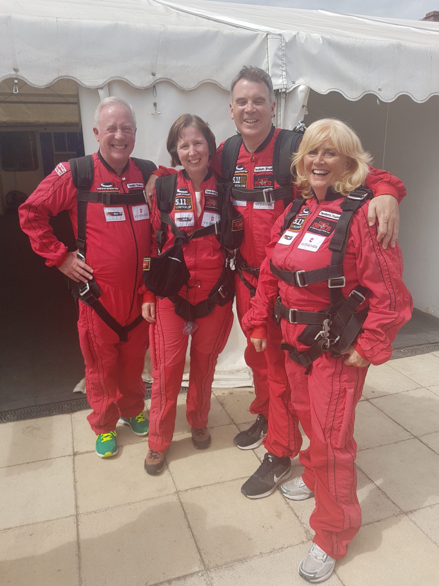 Why? Each member of the team was destined on that day to take part in a tandem skydive from 13,000 feet, strapped to a paratrooper from the British Army’s Red Devils display team.