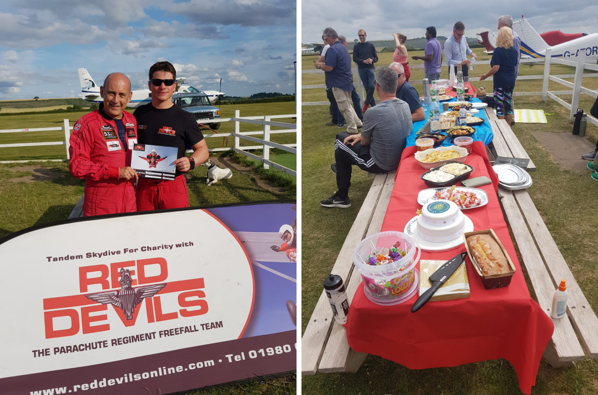 Large slices of cake, essential the team were told to replenish the calories consumed through sheer nervous energy were handed round and gratefully consumed! Just after 6.15pm the last group had completed their skydive and the team, with a final round of photographs and adulation, dispersed with a truly unforgettable experience under their belts.