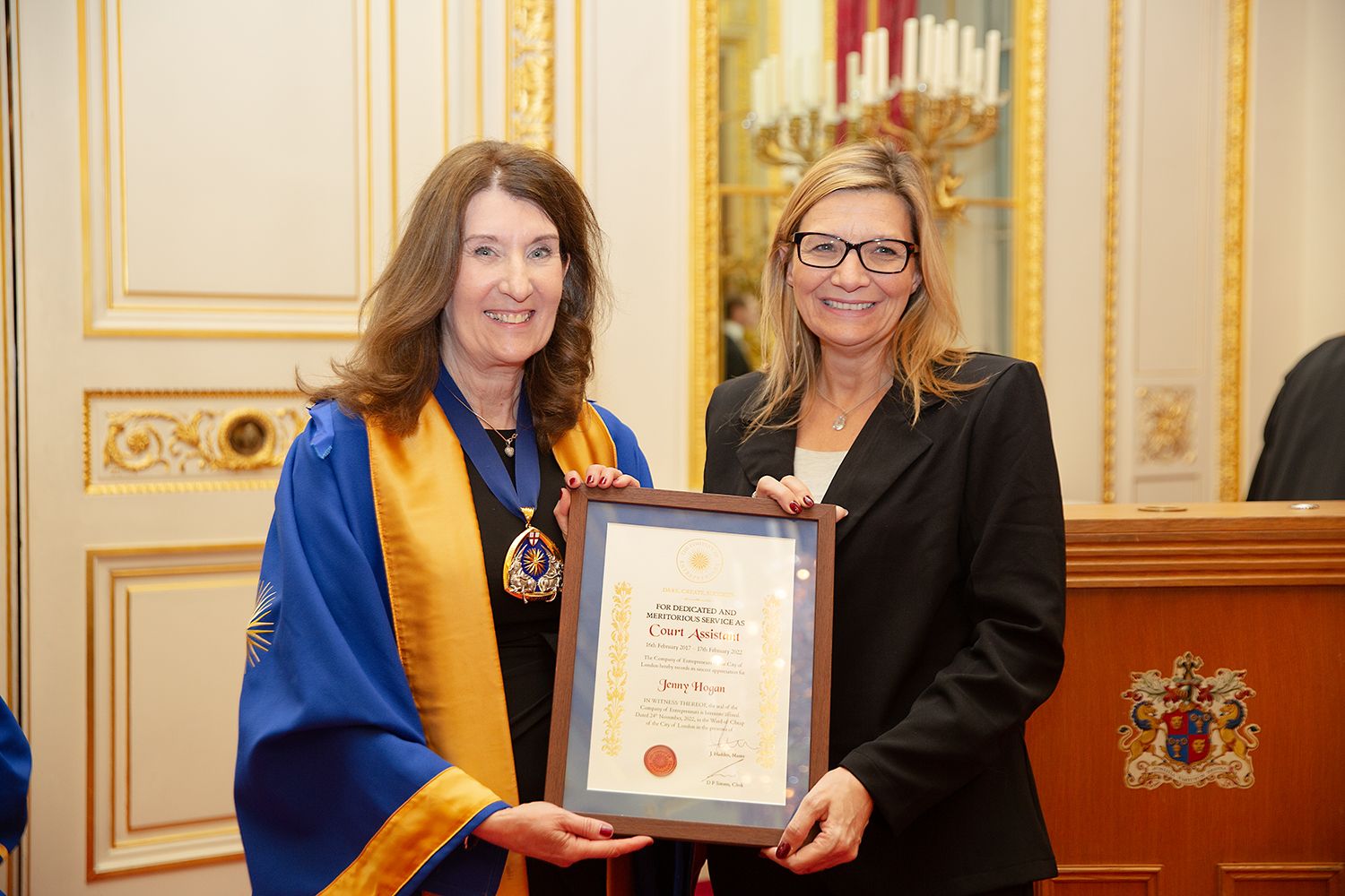 Assistants to the Court of the Company of Entrepreneurs serve a term of five years, and, on 24th November, 2022, the Master Entrepreneur, Mrs Judy Hadden, honoured two Freemen who had served a full term on the Court.