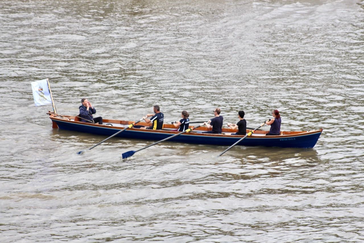 Then it was on, in procession, just a little further, with Havengore now at the back, before the cutters turned against the tide and, with noticeably louder groans, rowed hard to the North side. With appreciable care, the crews secured the boats, and disembarked at Westminster Boating Base before heading off for well-earned refreshments.