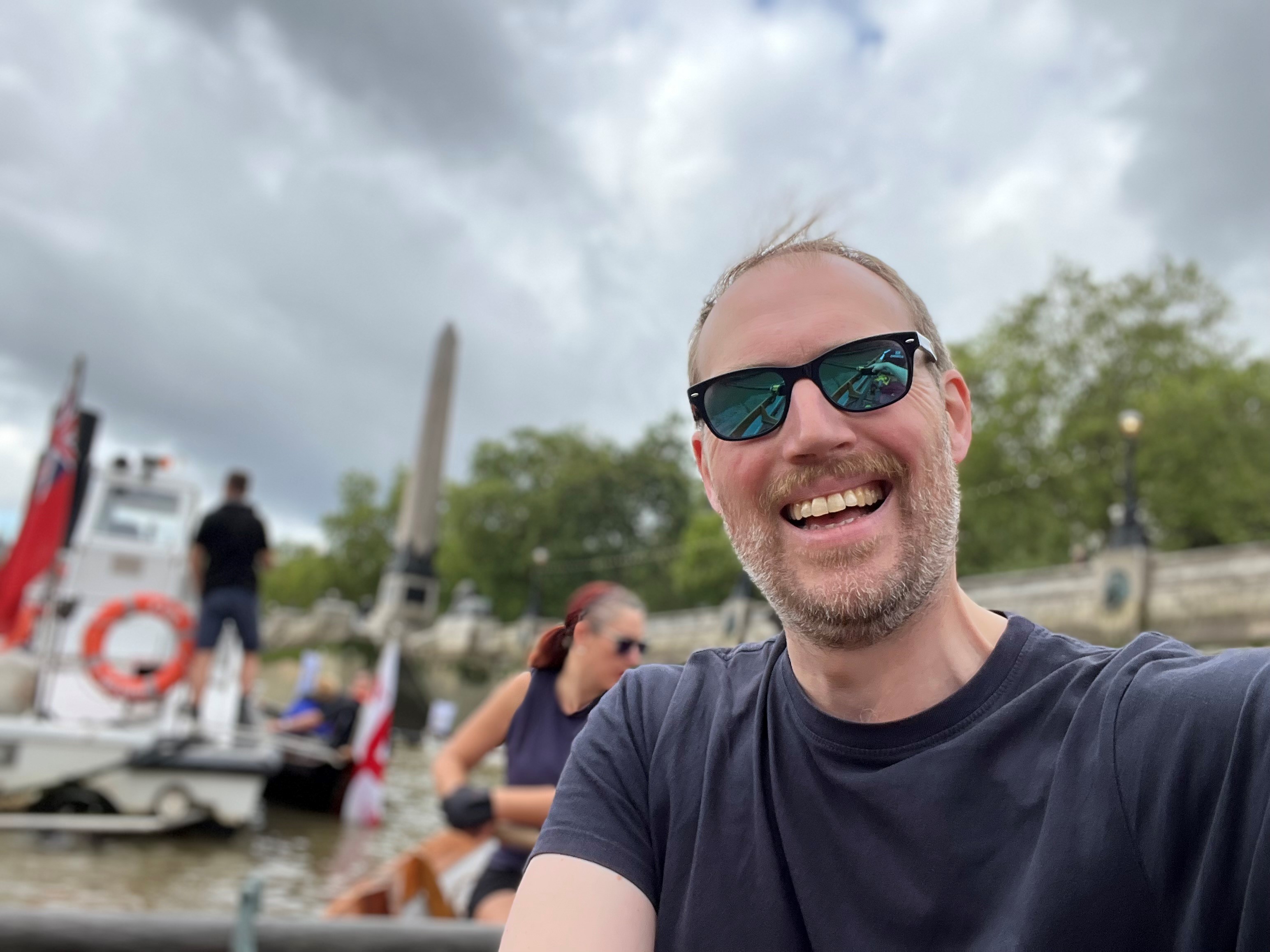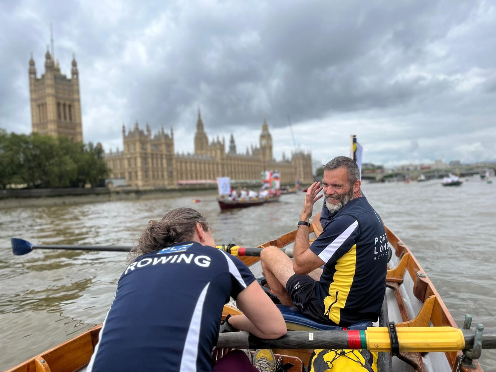 The Clerk with his customary modesty, allowed his rowing prowess and meagre upper-body strength to be traded (with only mild hostility) between various vessels, before taking his seat aboard the cutter Priscilla, sandwiched between some experienced rowers from the Port of London Authority, and flying the cypher of Edward VII. It was all smiles as the cox called for the crew to take forward positions, and, with the softest of groans, the flotilla set off into a swift and choppy Thames.