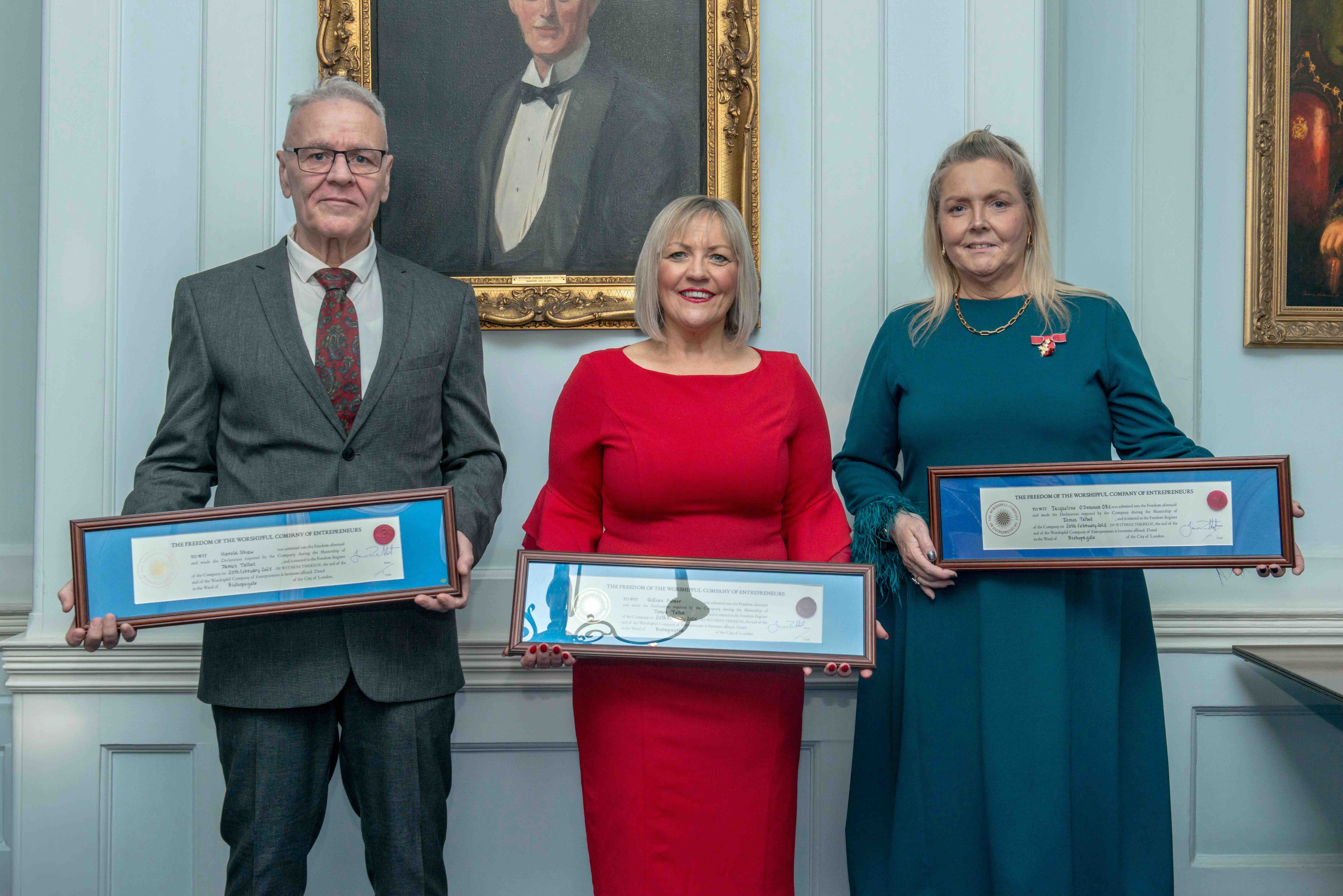 In an evening of historic firsts, on Thursday 20th February, the Master Entrepreneur, Mr James Talbot was privileged to admit the first Freemen of his year of office. In so doing, he was admitting the first Freemen directly to the new Worshipful Company of Entrepreneurs. As members of the newest of the City’s 112 Livery Companies, Jacqui, Gillian, and Harry pledged to: