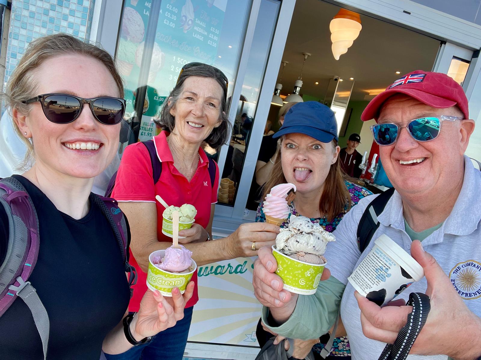 After a lovely walk full of conversation, they reached their destination: Deal Ice Cream Parlour, Deal Beach and Deal Pier. A beautiful day brushing off the cobwebs, great conversation, bi-lateral stimulation, sea air, camaraderie, and a nice bit of money raised for the Company Trust charity. Ice creams with fish & chips were a well-deserved end to a great event. Master Mark Huxley could only conclude that the event should be an annual occurrence!