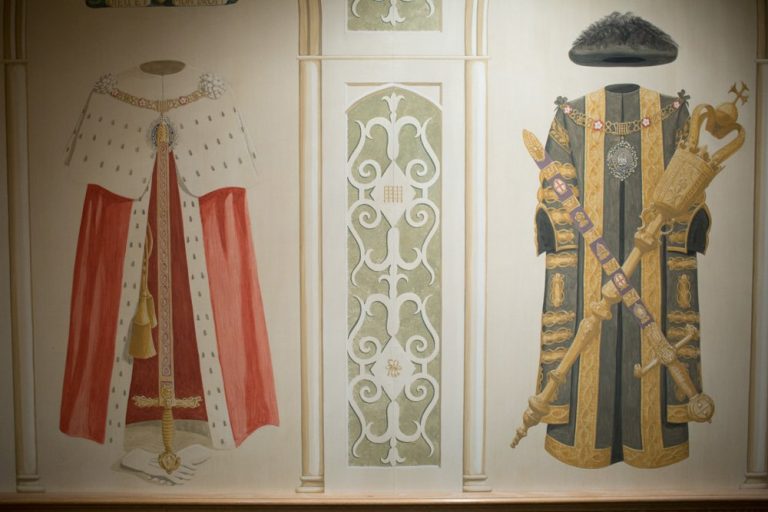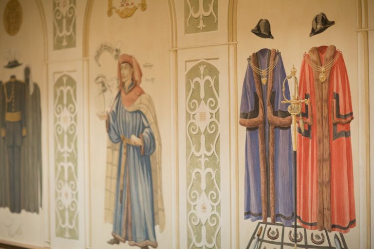 The Aldermen’s Dining Room of Guildhall, richly decorated with murals of the City’s robes and regalia, afforded an atmospheric setting for the admission of seven new Freemen to the Guild on the evening of Thursday 16th February.