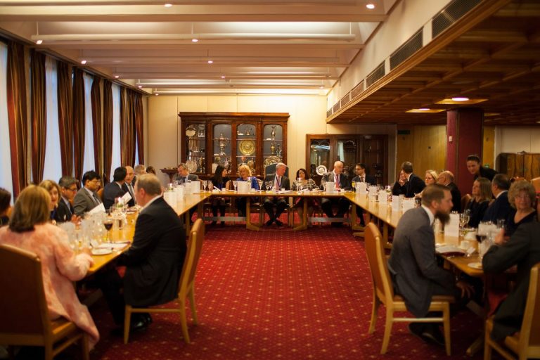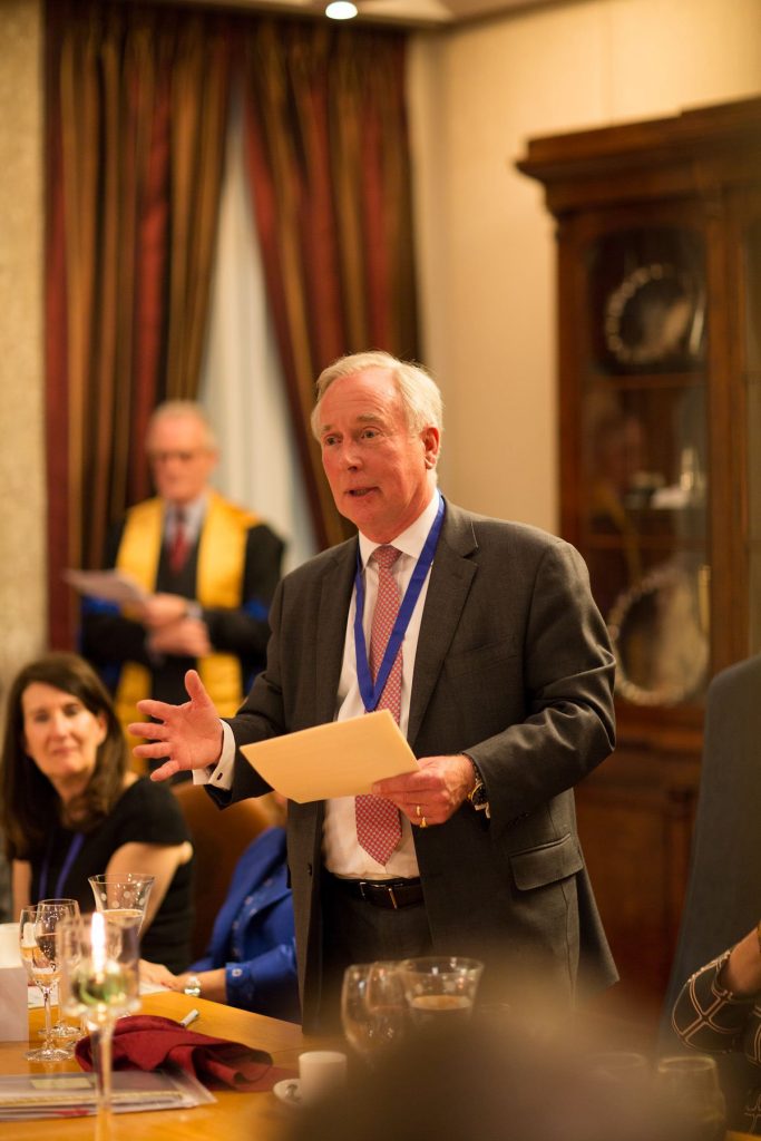 Freemen and guests enjoyed lashings of prosecco on arrival and then the Senior Warden (Alderman Peter Hewitt, resplendent in his bright blue Warden’s robe) and his wife introduced the evening. Their instructive remarks on conversational etiquette (including, crucially, how to politely detangle from a conversation!) were followed by a practice session – with the emboldened guests now fearlessly engaging (and disengaging) with the Wardens and Court Assistants.
