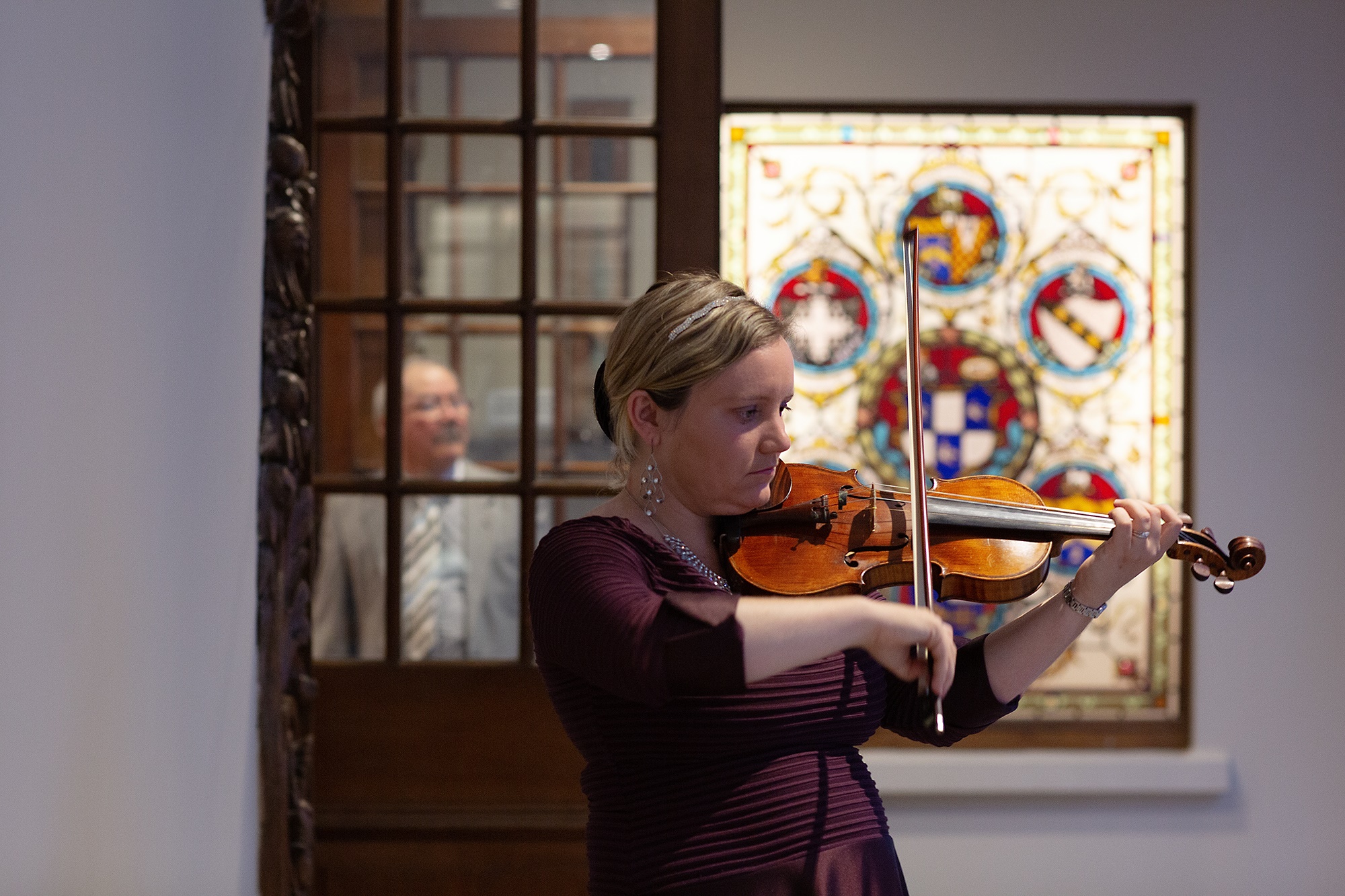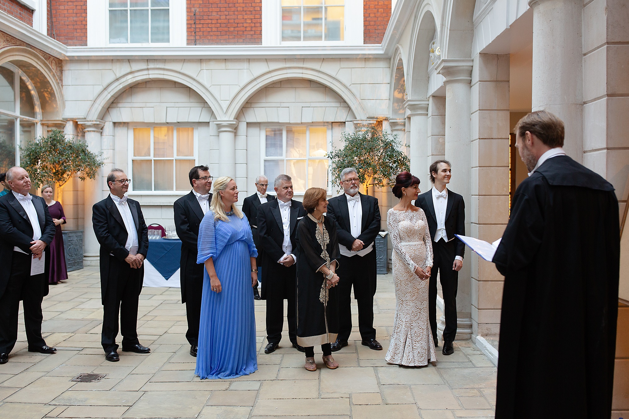 The Master, Mr Lars Andersen bade them all welcome, and entreated them to enjoy drinks and canapes in the Courtyard, to the vibrant accompaniment of violinist Lottie Greenhow.