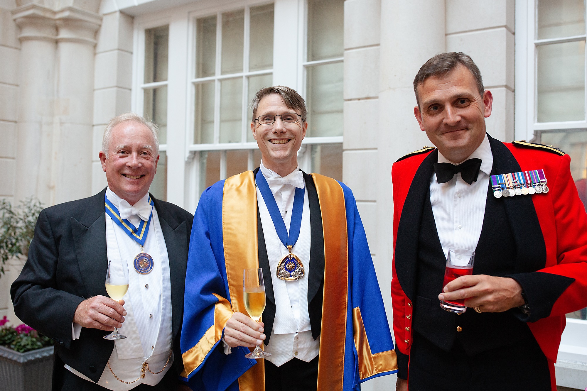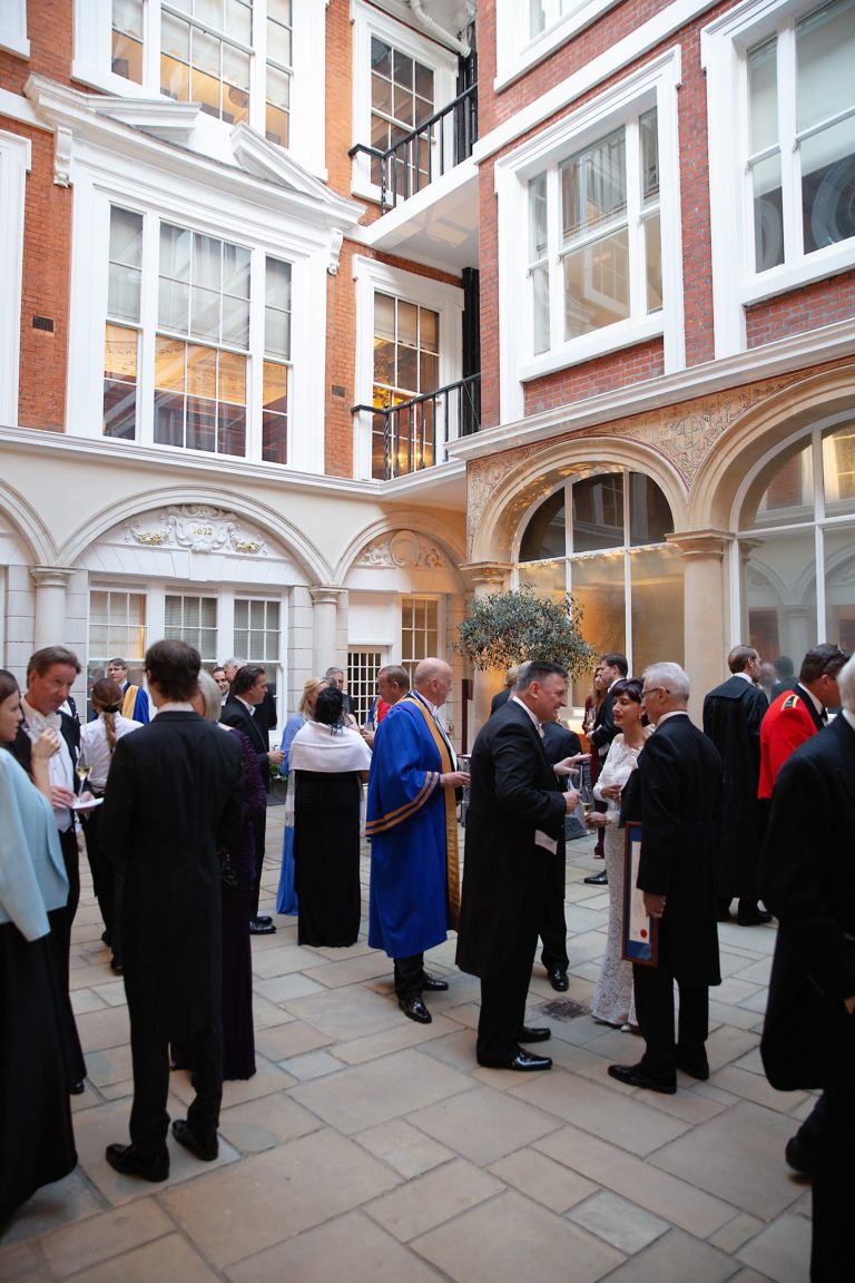 Freemen Entrepreneurs and their guests agreed, nevertheless, that the Banquet was well worth the wait. In most cases for the first time in over a year and a half, tailcoats and long dresses were dusted off, and medals and shoes neatly polished in anticipation of the return to a real-life event in the City of London. The late summer sunshine dappled the Courtyard of Tallow Chandlers’ Hall to warm the Master, Wardens and Court (emerging from their September Court Meeting), for a short ceremony of welcome for Freemen Entrepreneurs admitted virtually since April 2020, and to admit the first new Freeman since the easing of COVID-19 restrictions.