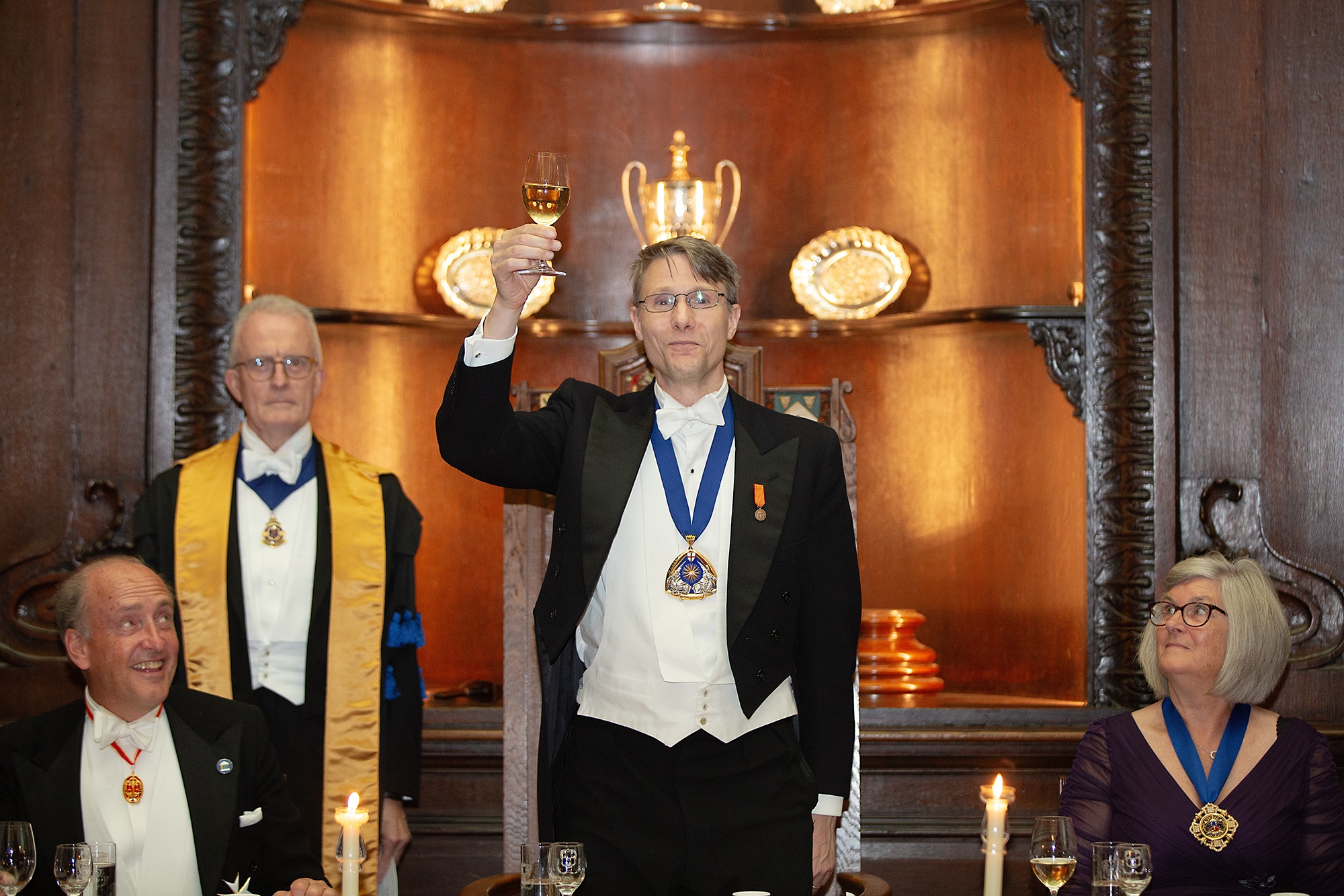 The evening’s principal guest was Alderman Sir Charles Bowman. Introduced by the Junior Warden, who paid tribute to Alderman Bowman’s mayoralty (as the 690th Lord Mayor 2018-19), and his continuing chairmanship of the Pan-Livery Steering Group. Sir Charles’s report into pan-livery philanthropy earlier this year had, he said, made for heartening reading – encouraging and inspiring the Company to do as much as it could to support the great charitable mission of the City’s Livery Companies.