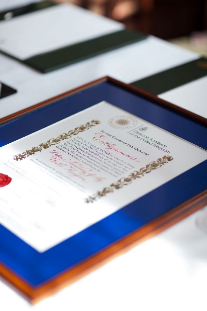 This year’s Lunch was auspicious, marking as it did the official signing of the Guild’s Article of Affiliation with the Defence Academy of the United Kingdom.