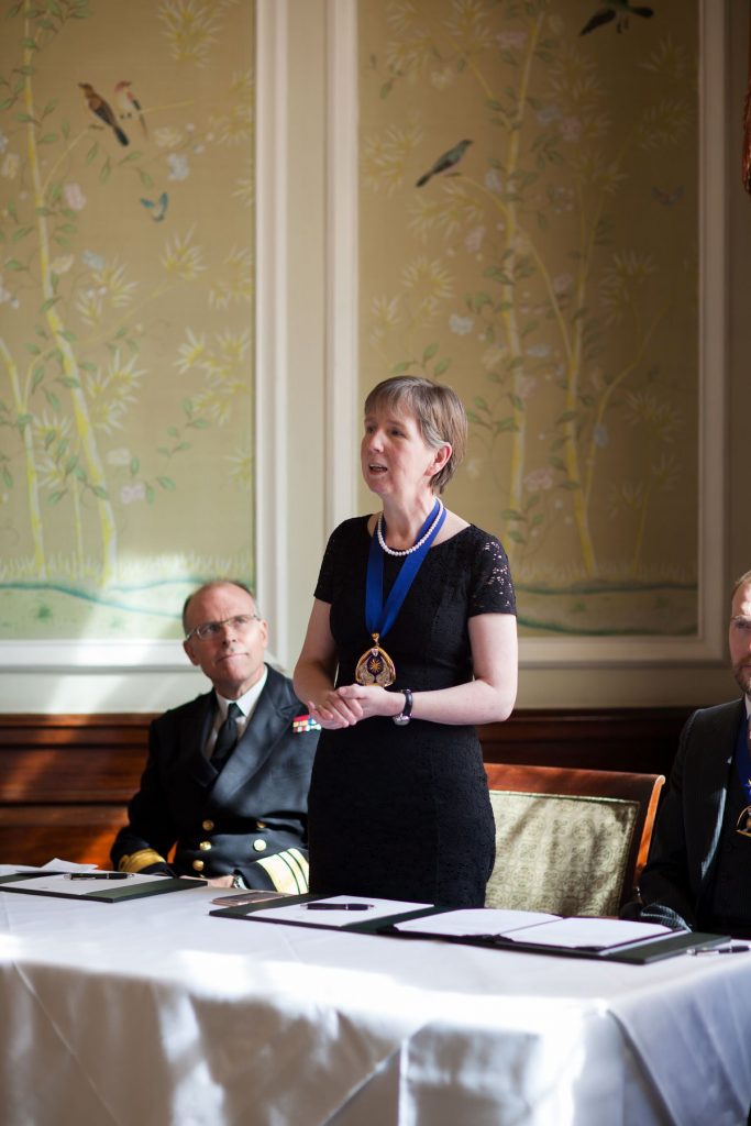 At midday, the Master spoke to contextualise the Affiliation, making reference to the historical importance of service and of the traditional obligations of the City institutions to supply skilful men to the armed forces. This obligation endures, and the Guild was, she said, proud to be following in this custom by providing skilled business minds and innovators to the Defence Academy, and to collaborating actively. The Director General, Vice Admiral Duncan Potts CB, represented the Defence Academy so splendidly, and spoke briefly to underscore the importance of the Affiliation in bringing together the common purposes of the two institutions. Admiral Potts spoke powerfully of risk and resilience, tenacity and toughness, and of his certainty (which he contrasted eloquently with mere ‘hope’) of a profitable relationship.