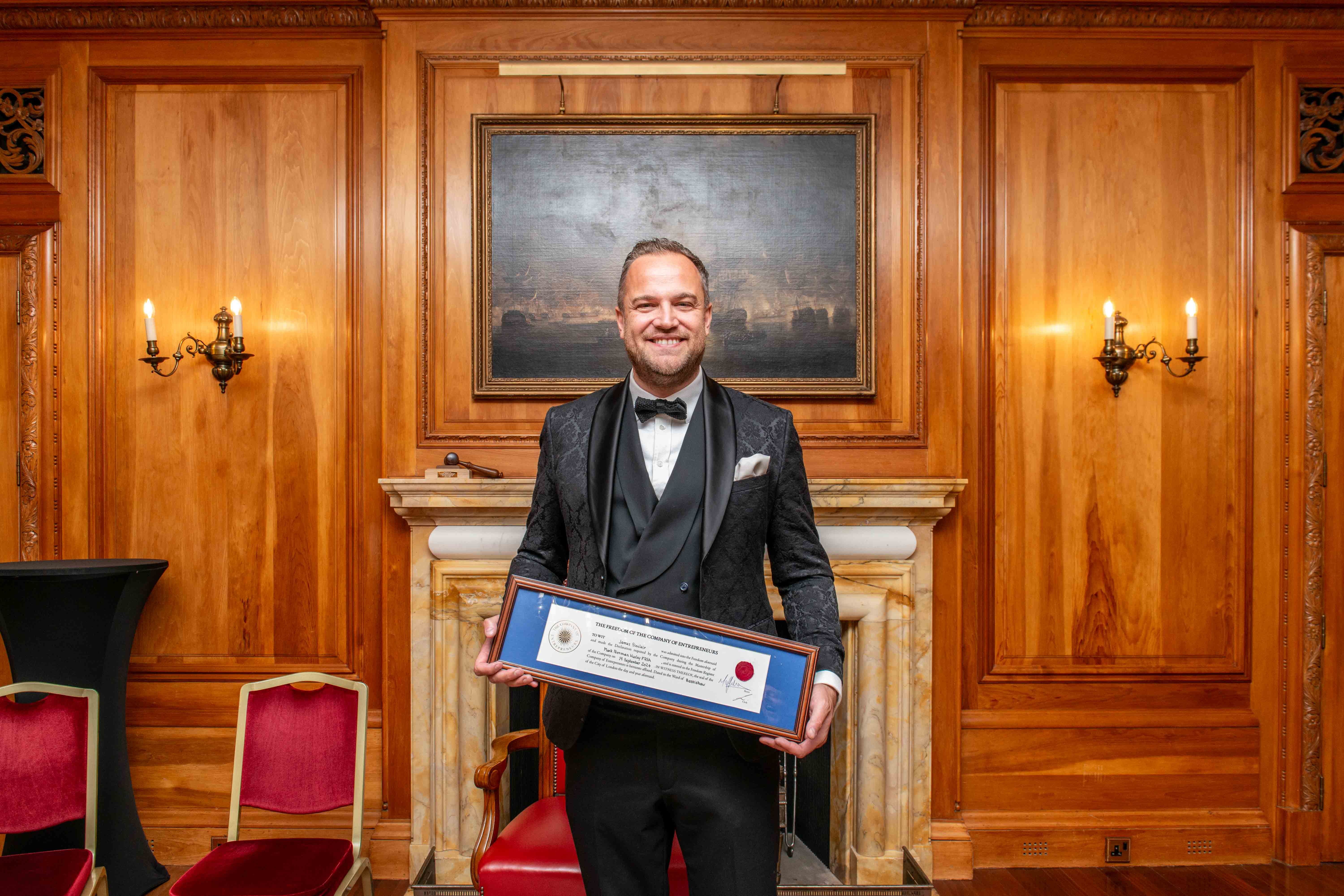 On Thursday 19th September 2024, the Master Entrepreneur, Mr Mark Huxley, was pleased to admit the founder of the Partyman Group, James Sinclair, as a Freeman Entrepreneur in a special ceremony at Brewers’ Hall in the City of London.